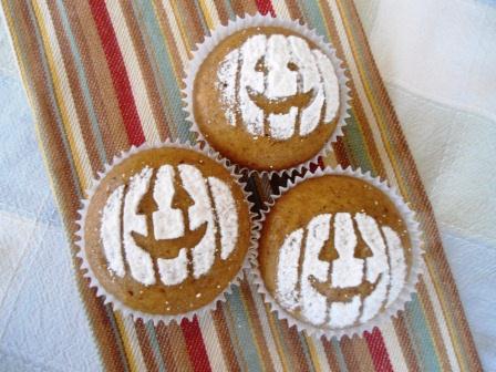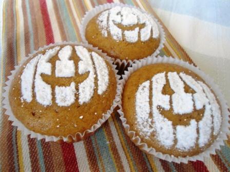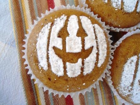 Ohhh yummy pumpkin muffins! And I love the jack-o-lantern decoration on the muffins. 🙂