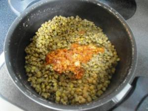 Una vez que estén cocidas pero aún firmes (al dente) entonces retirar del fuego y colar. Hay que eliminar el exceso de agua. Luego colocar las lentejas en una olla, pero todavía no las pongan en el calor.