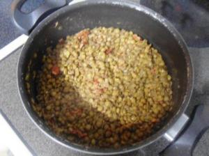 Para que vean lo fácil que es. En una olla colocar las lentejas, cubrirlas con abundante agua y cocinarlas hasta que estén tiernas. Les recomiendo que las hagan al dente porque después se vuelven a cocinar y es mejor si en ese momento las cocinan más.