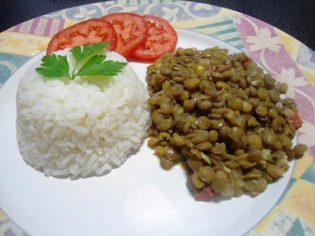 Que curioso comer lentejas los lunes!!!yo las hago también con arroz y verdura pero todo mezclado y también con carne..De cualquier forma nos gustan mucho..Bs