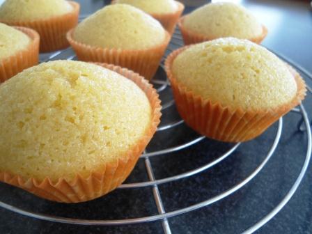 Una vez que los cupcakes estén fuera del horno, en caliente y sin retirarlos del molde, pincelarlos con el almíbar. Poner varias capas. Mientras estén calientes los cupcakes, absorberán el almíbar y eso hará que queden más húmedos.