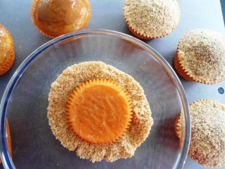 Listo, una vez que estén bien trituradas, colocarlas en un tazón pequeño, pero del tamaño suficiente para que pueda entrar el cupcake. Colocar dentro del tazón cada cupcake de modo que el manjarblanco quede para abajo, girar un poco el cupcake dentro de las galletas y levantar. Las galletas trituradas quedarán adheridas al cupcake.