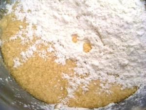 Una cosa que me pasó mientras preparaba la receta fue el uso de un ingrediente que no tenía pensado. Verán, la receta original lleva sour cream, que bien puede ser reemplazada por crema de leche cortada con limón o vinagre blanco, como el buttermilk, pero con crema. El asunto es que en lo posible, trato de no usar sour cream porque me cae un poco pesado, así que lo reemplazo por yogurt natural. En este caso decidí usar yogurt de vainilla, sabía que había comprado un frasco hacía unos días. Cuando saqué todos los ingredientes y estaba midiendo el yogurt, el olor me pareció algo raro y entonces descubrí que no era yogurt de vainilla, era yogurt de plátano.