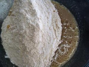 En otro tazón cernir la harina con el bicarbonato, sal y todas las especias.