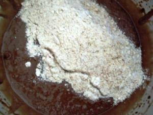 Agregar los ingredientes secos.  Esta vez lo hice fuera de la batidora y los mezclé en forma envolvente con una espátula.