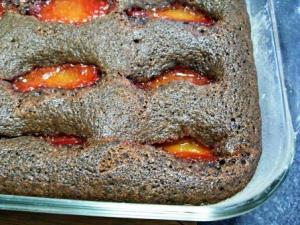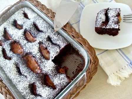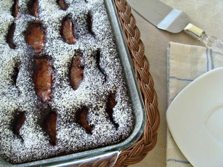 Queque de chocolate, almendras y ciruelas