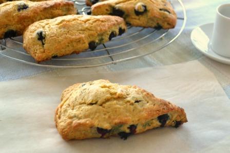 Esta vez decidí que el gusto me lo daría a mí. Me gustan los scones en su forma original, es decir, no salados y con un dulce bastante ligero, casi imperceptible. Entonces opté por esta versión de blueberries, me pareció una receta fantástica y además los blueberries están abundando ¿Se han dado cuenta que en los supermercados siguen a la venta? Esto es raro porque es un producto de verano, sin embargo los hemos estado viendo todo el año. Me pregunto dónde los estarán cultivando para que no desaparezcan.