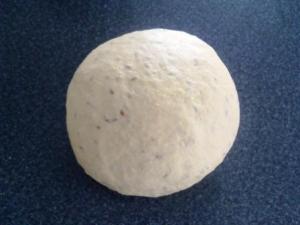 Retirar la masa del tazón, colocarla sobre la mesa y formar un bollo. No es necesario enharinar la mesa, pero si al formar el bollo sienten que la masa se les pega, entonces espolvoreen un poco más de harina.