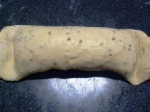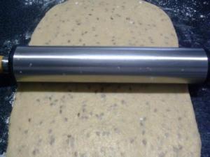 Ahora enrollar la masa por lado más angosto. En cada enrollada traten de sellar la masa haciendo presión con las muñecas: enrollan, presionan, enrollan, presionan…y así.