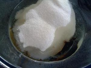 Mezclar el yogurt con el bicarbonato. Cuidado con esto porque al colocar el bicarbonato el yogurt aumenta. Hay aquí una reacción química que hace que el volumen aumente. Por favor, no me pregunten qué efecto hace esto en la masa del muffin porque no tengo idea. Yo lo que recuerdo es que me quedé con esta receta justamente por este paso, ya que fue siempre una intriga para mí.