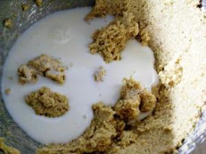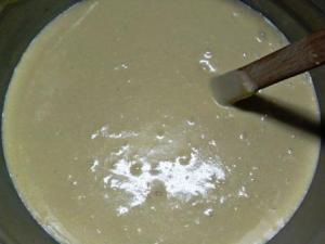 En este momento verán que su masa ya no está cortada, pero es bastante líquida.