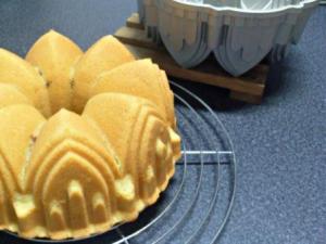 Encontré moldes de bundt cake, pero no había muchos modelos, no es como cuando uno revisa los modelos disponibles en Williams-Sonoma por ejemplo, pero ahí estaba este, el Cathedral de Nordic Ware, me pareció lindo y sin pensar mucho decidí comprarlo. Qué puedo hacer, fue uno de esos impulsos, como el que me llevó a comprar los pirotines para muffins.