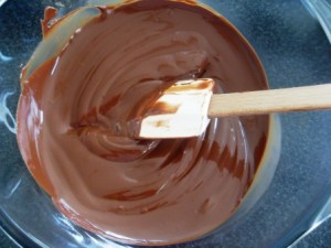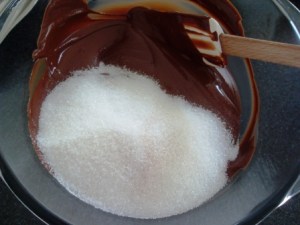 Al chocolate derretido, que debe estar algo tibio, agregarle el azúcar y mezclar bien.