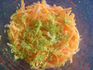 En un tazón pequeño mezclar la zanahoria rallada con la ralladura de naranja.