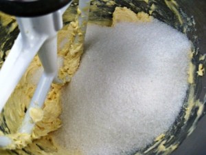 En el tazón de la batidora a velocidad media-alta cremar la mantequilla con el azúcar.