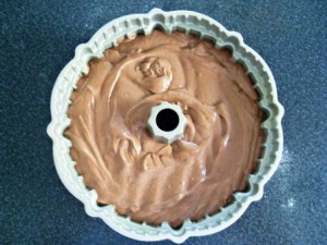 Verter la masa en un molde de Bundt Cake de 10 tazas debidamente engrasado.