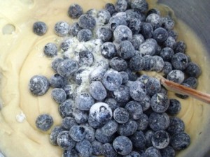 Fuera de la batidora incorporar los blueberries, mezclando bien con la ayuda de una espátula. Háganlo en forma envolvente, moviendo la espátula de arriba hacia abajo, procurando llegar hasta el fondo del tazón.