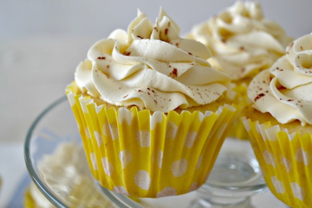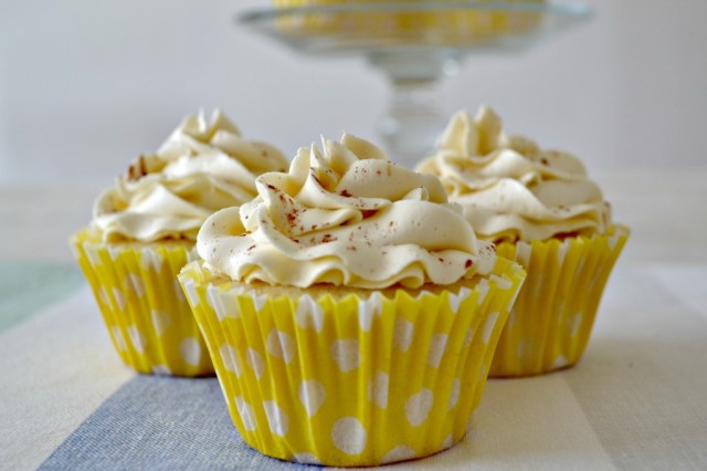 Ahora vamos a preparar el buttercream, se hace con la receta clásica pero le ponemos la leche saborizada. Todo el resto lo hacemos igual, incluyendo la vainilla. Cargamos la manga adaptada con la boquilla que más les guste (yo usé la 2D de Wilton) y con eso decoramos los cupcakes. Al final le espolvoreamos un poco de canela. Y listo, ya tenemos nuestros deliciosos cupcakes terminados y listos para comer.