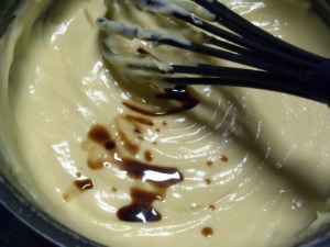 Retirar del calor y si quieren le pueden poner esencia de vainilla. La verdad es que el arroz con leche no me sabe mucho a vainilla, pero sí la crema pastelera y como esta crema es una mezcla de ambas cosas, sentí que quedaría bien con la vainilla. Y quedó bien.