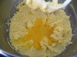 Agregar los huevos uno por uno y batir bien. Los huevos los agrego ligeramente batidos y entre cada uno voy raspando los bordes y el fondo del tazón. Se bate hasta que vean que la masa ha quedado bien cremosa.