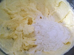 Cernir la harina de torta junto con el polvo de hornear y agregar al batido en tres tandas, alternando con dos tandas de la leche saborizada. Cuando agreguen la harina de torta recuerden de poner a mínimo la batidora ya que solo queremos integrar y no batir.