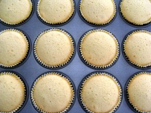 Repartir la masa en los moldes de cupcakes y hornear en horno precalentado a 350°F/180°C por unos 18 minutos, hasta que al insertar el probador este salga limpio. Como ven los cupcakes no toman mucho color, así que no se fíen de eso, no los vayan a dejar más tiempo en el horno porque se secarán, guíense por el probador.