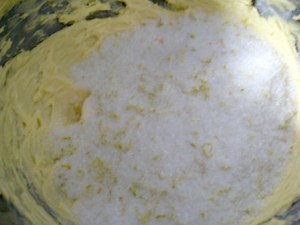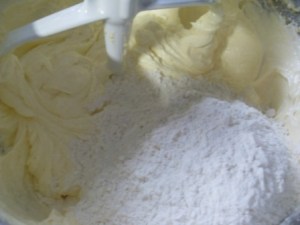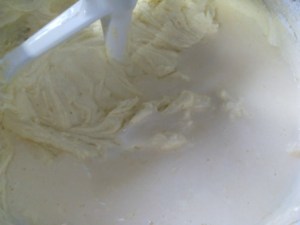 En un tazón de la batidora cremar la mantequilla con el azúcar saborizada. La mantequilla debe estar a temperatura ambiente. Deben batir por unos 5 minutos, hasta que vean que la mezcla está bien cremosa.