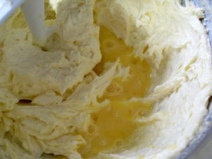 Agregar los huevos uno por uno, batiendo bien después de cada adición. Yo agrego los huevos ligeramente batidos y después de cada uno aprovecho en raspar con una espátula el fondo y los lados del tazón, para lograr así un batido parejo.