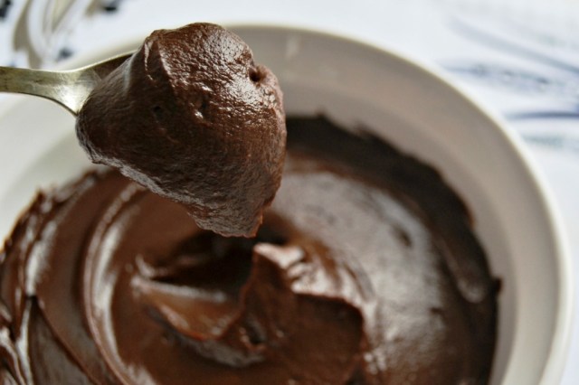 Eso mismo, el pensar la cantidad de mantequilla me hace que no lo quiera ni probar. Este es muy bueno, más ligero y si no dices de qué es la gente ni cuenta. No se derrite, pero si lo haces de un día para otro veras que se pone más oscuro, porque la palta se negrea un poco, pero como es de chocolate el efecto es mejor, se ve súper chocolatoso.