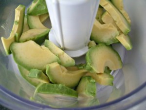 Vamos entonces a prepararlo. En el procesador de alimentos colocar una palta mediana pelada y sin semilla. La palta debe estar madura y no debe tener fibras. Si la palta está fibrosa, luego de procesarla les recomiendo que la pasen por un colador fino antes de seguir con el resto de ingredientes.