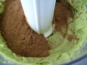 Agregar la cocoa (cacao en polvo). No es necesario que lo ciernan, como se va a procesar cualquier grumo que tenga quedará disuelto con las cuchillas. Detengan un momento el procesador y con una espátula raspar los bordes y el fondo de la taza para que puedan lograr una mezcla pareja.
