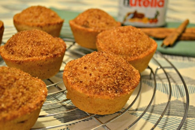 Así pues, estos muffins tienen un rico sabor a canela y nuez moscada, además tienen una cubierta de azúcar y canela, que hacen de glaseado y que le otorgan una textura crocante al morderlos y bueno, el toque único, el relleno de pura Nutella.