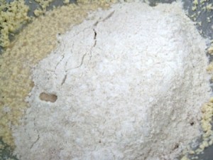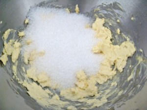 En un tazón batir la mantequilla con el azúcar hasta que la mezcla esté cremosa.