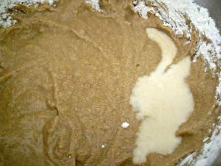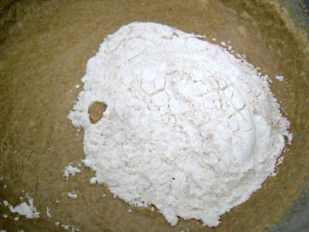 En un tazón cernir la harina junto con las especias, polvo de hornear, sal, bicarbonato. Bajar la velocidad de la batidora y agregar estos ingredientes secos en tres tandas, alternando con dos tandas de buttermilk.