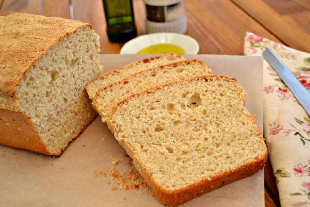 El resultado final fue bastante bueno, un pan con buena miga, buena textura y buen sabor. Vamos, no esperen a que sepa idéntico a un pan con harina de trigo, este tiene un sabor algo diferente, pero totalmente aceptable, con decirles que hasta Andrés lo comió y le pareció rico. Personalmente me gustó mucho el pan y con la harina que me ha quedado haré otro, pero creo que le pondré alguna hierba fresca, o queso…o ya sé…cebollas y queso…estoy segura que quedará buenísimo.