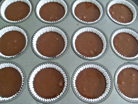 Repartir la masa en los moldes de muffins, que pueden estar engrasados y enharinados o pueden estar forrados con pirotines para horno.