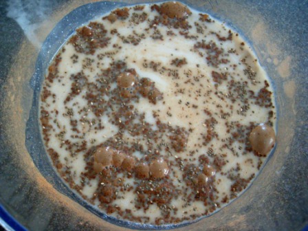 Cubrir el tazón y dejar reposar por 10 minutos, luego mezclar un poco y volver a cubrir. A los 10 minutos hacer lo mismo, verán que la mezcla va espesando. Al final tapar y colocar en la refri por una hora.