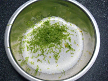Mezclar el azúcar con la ralladura de limón hasta que el azúcar quede bien perfumada.