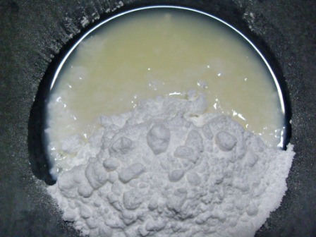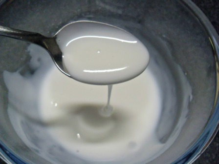 Mezclar bien y tratar de obtener un glasé flojo, de modo que caiga sin dificultad por la cuchara. Si queda muy espeso, entonces agregarle una cucharadita de agua y mezclar.