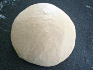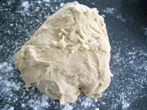 Pasar la masa a una mesa enharinada y darle una ligera amasada, si sienten que la masa se pega en las manos, agregarle un poco más de harina. Aquí le puse un par de cucharadas más.