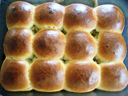 Verán que la cantidad de levadura es bastante, pero ojo, la receta lleva una buena porción de miel y de mantequilla, así que no es tan descabellado, pero supongo que eso también contribuye a que leven más rápido, sin trucos ni nada. El resultado final es buenísimo, no vayan a pensar que terminan con un sabor a pura levadura, no, el sabor es más bien algo dulzón y son muy suaves.