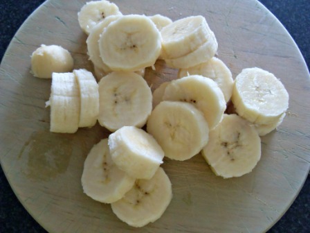Pero vamos con la receta. Cortar en rodajas un plátano grande que esté bien maduro, colocarlo en un recipiente hermético y ponerlo en el congelador como mínimo 2 horas.