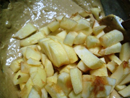 Listo, retirar de la batidora y agregar las manzanas cortadas en cubitos y mezclar con ayuda de una espátula.