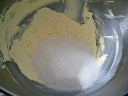 En el tazón de la batidora, batir la mantequilla con el azúcar hasta que la mezcla quede muy cremosa.