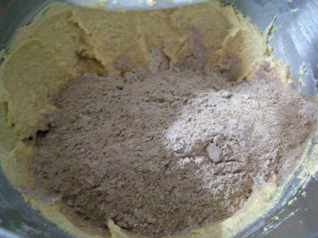 Cernir la harina junto con la cocoa y la sal, reducir la velocidad al mínimo y agregar los ingredientes secos, mezclar solo hasta integrar.