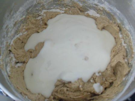 Reducir la velocidad al mínimo y agregar el puré de plátano, batir hasta integrar bien.