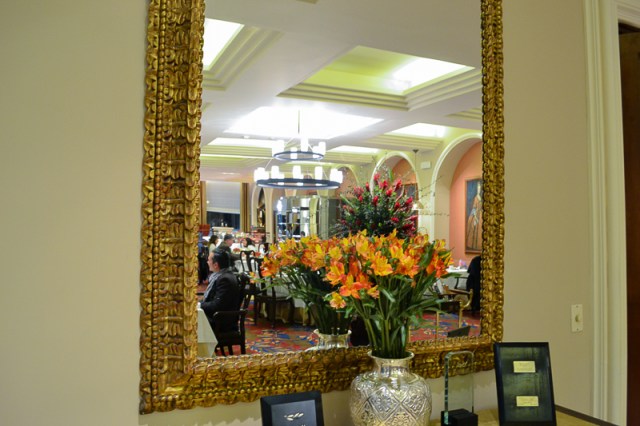 Y les digo que si el hotel es lindo, pues el restaurante también lo es. Tiene ese corte medio antiguo, medio tradicional y muy romántico. Detalles que jalan la vista, como espejos, cuadros, adornos de plata y flores, muchas flores.