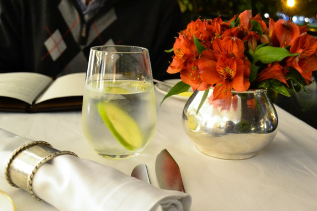Nos dieron una mesa en la terraza, que en un principio pensé que me congelaría, pero la noche estuvo fresca, agradable y en todo caso tienen calentadores para evitar pasar frío. Y mejor, porque estar en la terraza es mucho más acogedor que en el salón, es más fresco, se siente más amplitud y puedes disfrutar un poco de ver a San Isidro de noche. Lo bueno es que no se escucha el ruido de los carros, o por lo menos no me di cuenta.