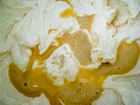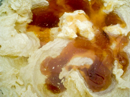 Agregar la miel y el aceite y batir bien para que todo quede integrado. Usen una buena miel de abeja, es clave para obtener un buen resultado.
