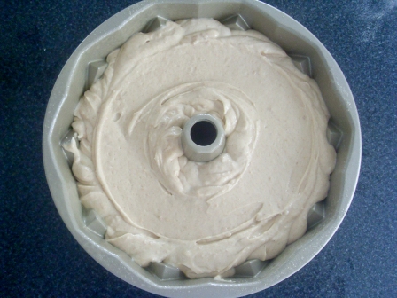 Verter la masa en un molde de 10 tazas bien engrasado y enharinado, o engrasado con grasa en spray, eso es lo que normalmente uso.